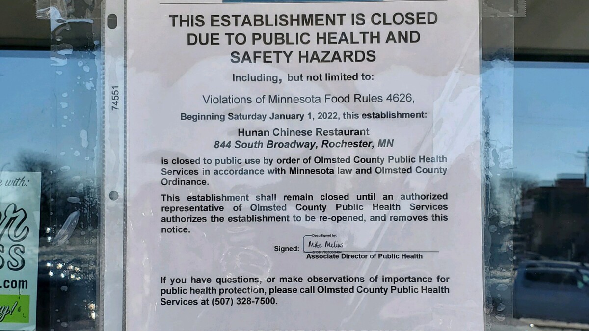 Hunan Chinese Restaurant In Soldier Field Plaza Closed Due To Health And Safety Hazards Post Bulletin Rochester Minnesota News Weather Sports